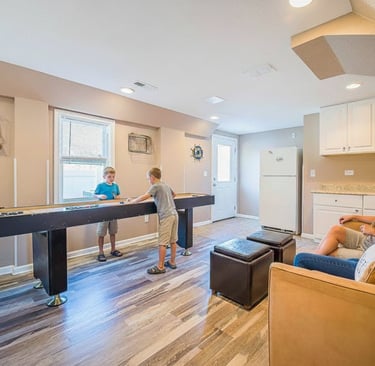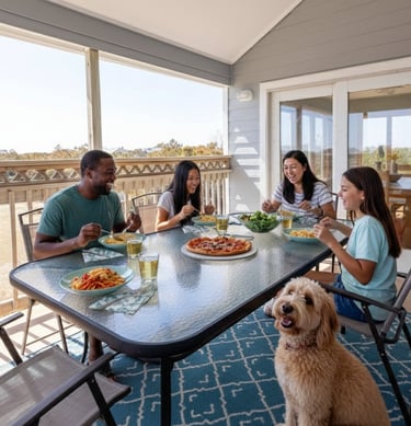 Spaces designed for kids, adults, and pets to relax and enjoy together.